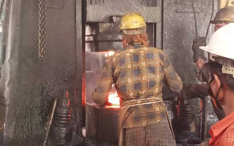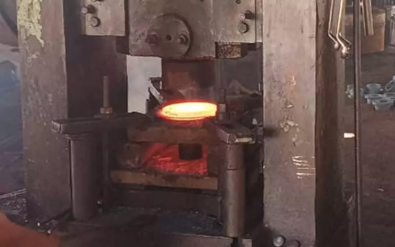 To deform the metal, we utilize the hammer or the power hammer, whether handheld or massive, delivering high-pressure impact blows with a driving force of 50,000 lbs. Our equipment includes Drop Hammer & Forging Press, enabling us to forge a job weighing up to 15 Kgs (33Lbs).